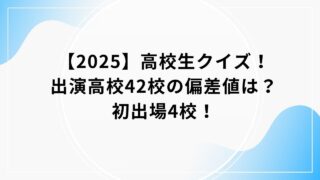 大学・高校 【2025】高校生クイズ!出演高校42校の偏差値は?初出場4校! 2025年9月9日に日本テレビ系で放送『2025全国高等学校クイズ選手権大会』。今回も、全国5000校の中からキビしい予選を勝ち上がった全42校が集結しました。2024年は兵庫県の灘高校、長田高校と昭和学院秀英高校による決勝戦の結果、東大合... 2025.09.10 大学・高校