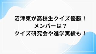 大学・高校 沼津東が高校生クイズ優勝!メンバーは?クイズ研究会や進学実績も! 2025年9月9日日本テレビ系で放送された『2025 全国高等学校クイズ選手権』。全国5,000校を超える高校の中から42の代表校が難問に挑戦しましたが、並みいる強豪校を抑えて頂点に立ったのは、静岡県立沼津東高校でした。この夏、大会前に絶対... 2025.09.10 大学・高校