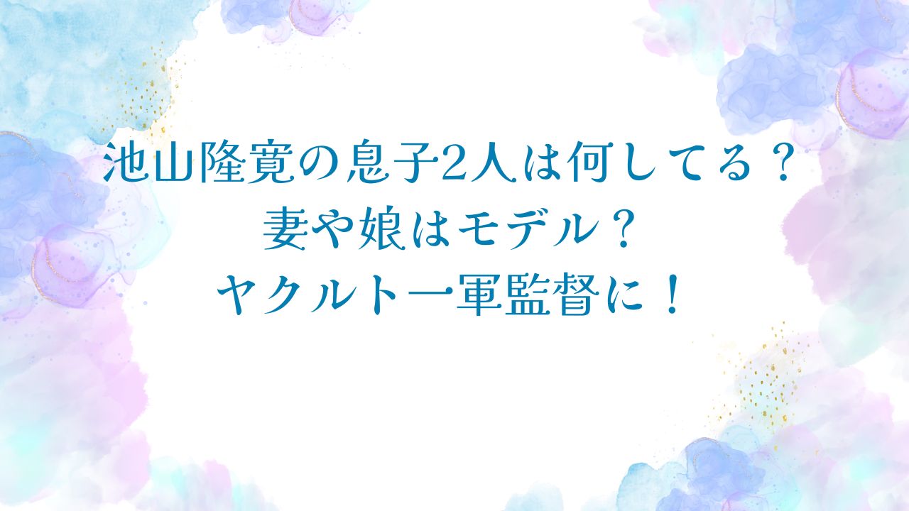 この記事では、スワローズの池山隆寛2軍監督の妻や息子・娘の情報や、スワローズの次期監督就任に関する噂についてお伝えします。