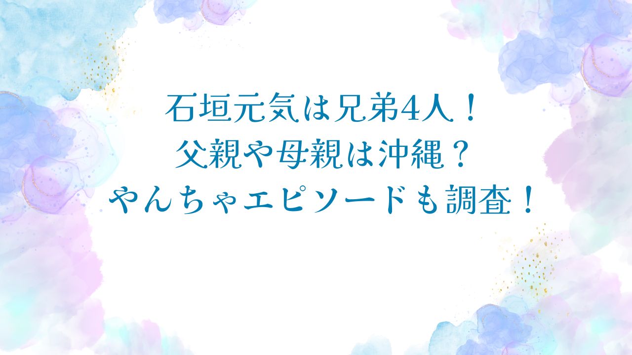 石垣元気投手は、兄2人、妹1人の4人兄弟で、元気投手は3人目です。