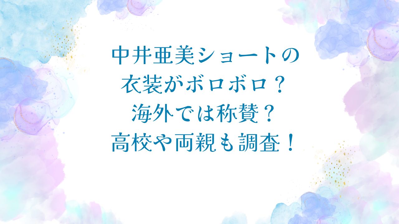 この記事では、中井亜美選手の衣装がボロボロ?や出身高校・ご両親などの情報を詳しくお伝えします。