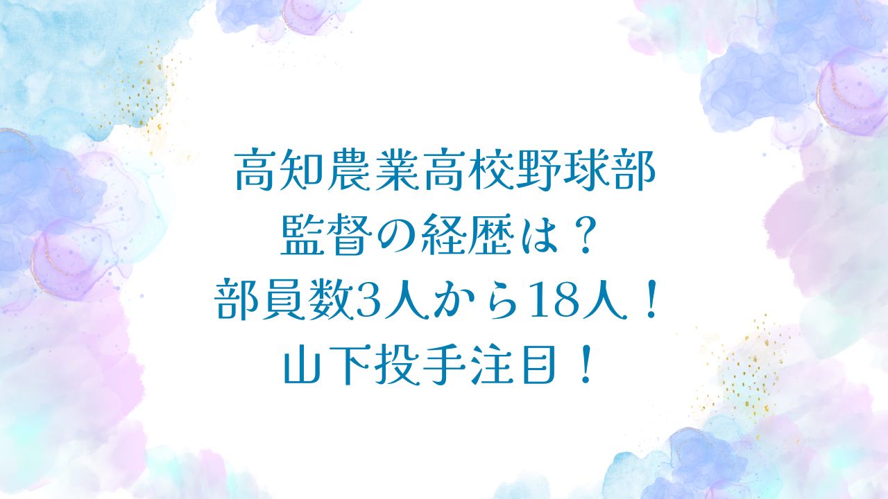 この記事では、春のセンバツに21世紀枠として出場する高知農業高校野球部の監督などの情報をお届けします。