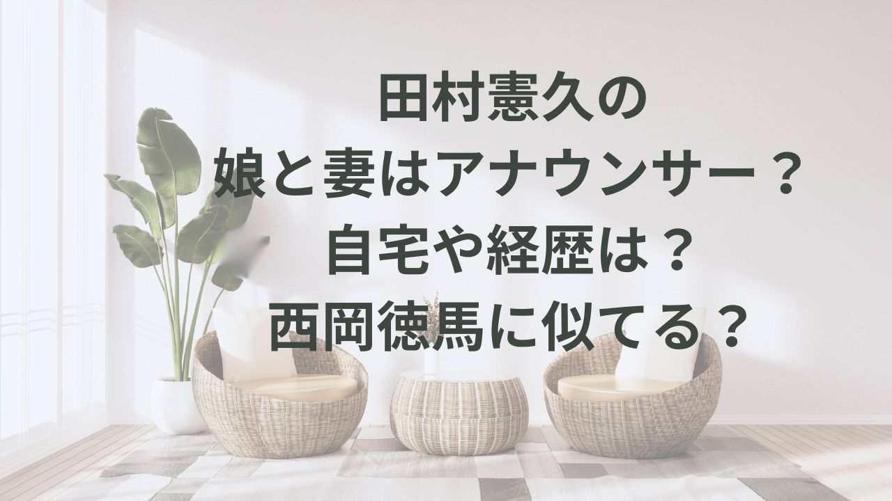田村憲久議員の娘・真子さんと妻がアナウンサーであることについて、詳しく解説していきます。