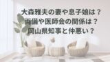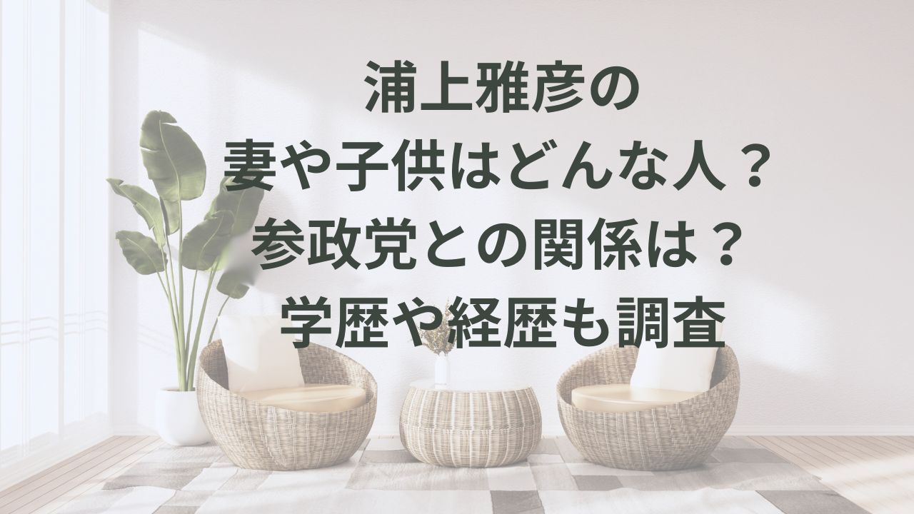 この記事では、岡山市長選挙に立候補する浦上雅彦さんの妻・子供などご家族の情報や参政党との関係、ご本人の学歴や経歴に関して詳しくお伝えしていきます。